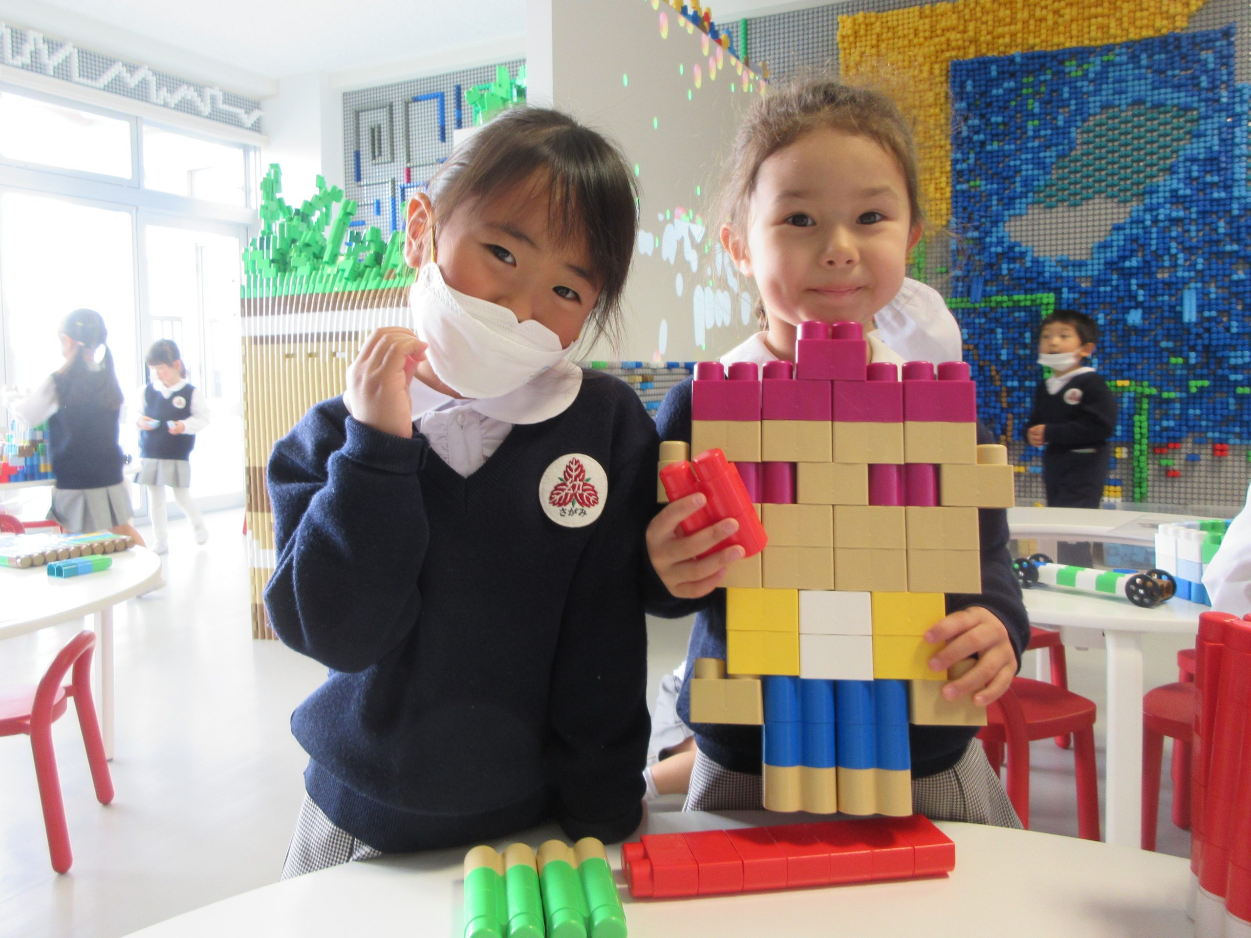 さくら組の子ども達が、ブロックの部屋のブロックで作った素敵な作品を見せてくれました。今後も素敵な作品を見せてくださいね!