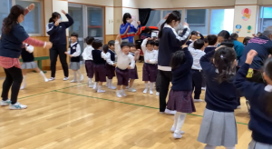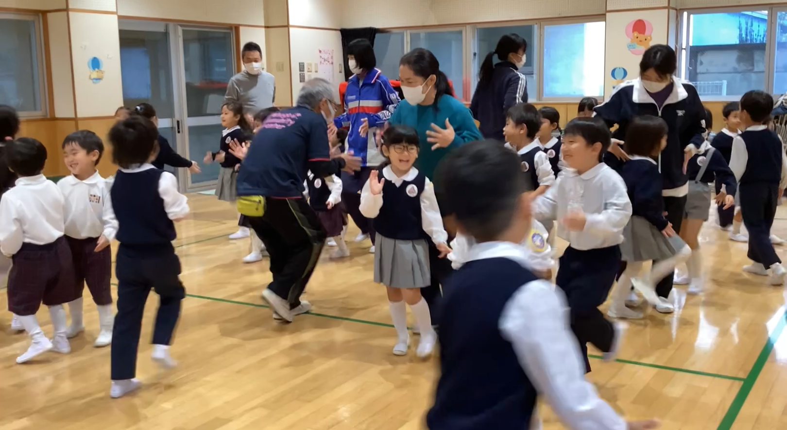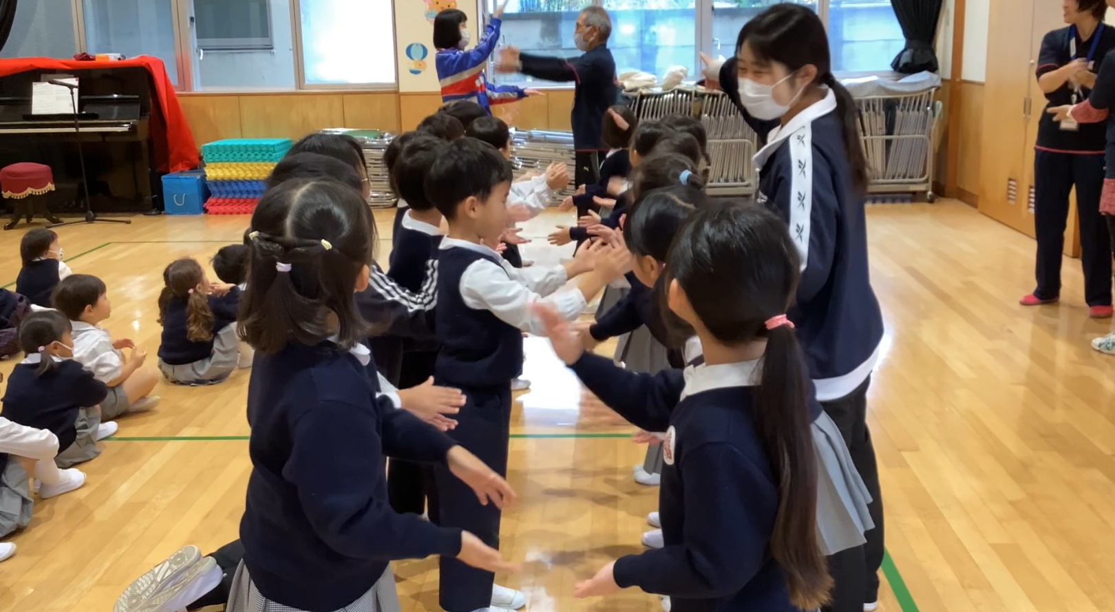 11月25日(火) 園長先生のお友達という設定で長後市民センターの方が来園し、手遊びやジャンケン遊び、ピアノの音に合わせながらのリトミック遊びを楽しみました。一緒に参加していた園長先生の姿に子ども達も大喜びでした。 楽しい時間をありがとうございました!