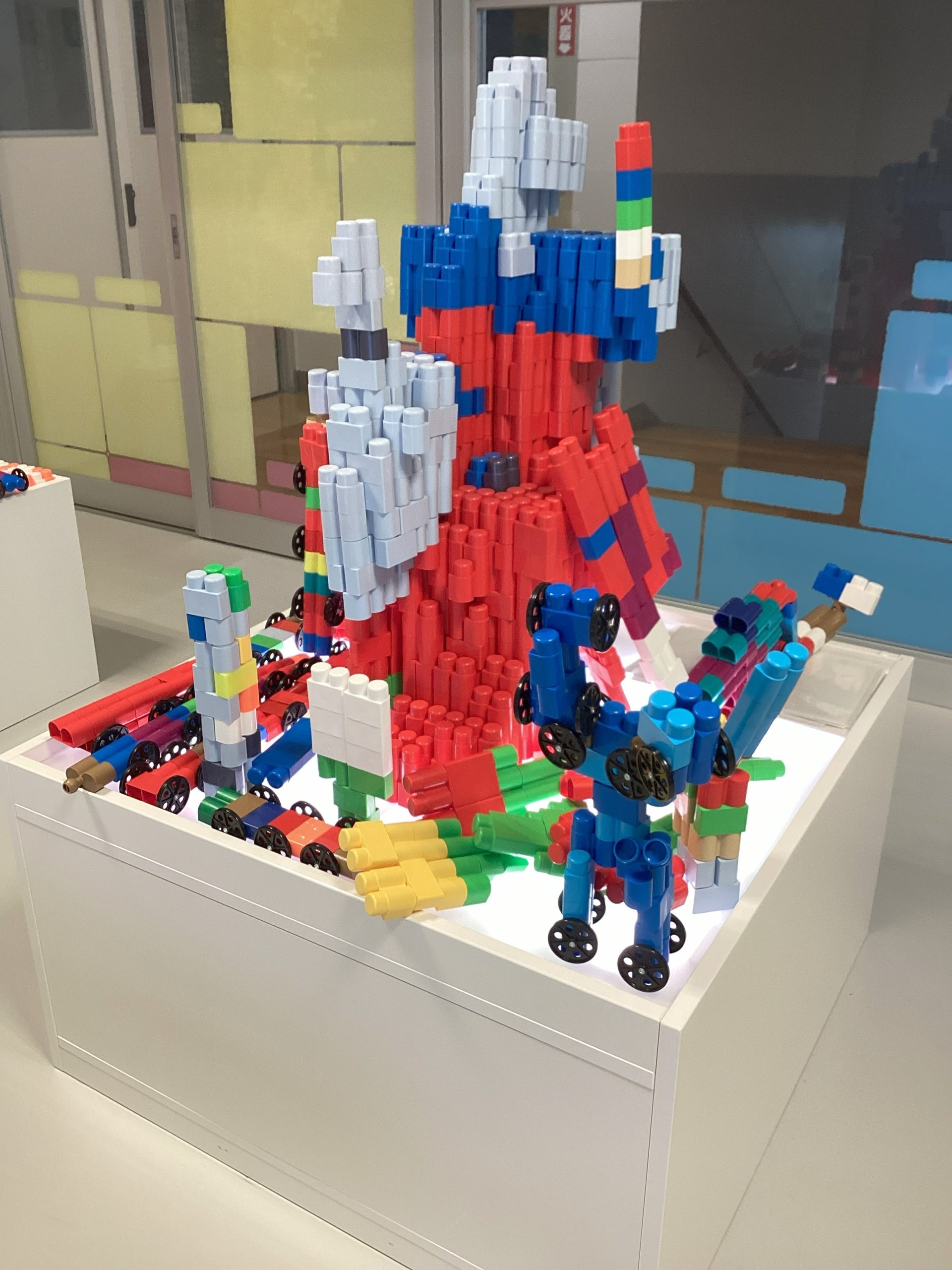 11月27日(木) さくら組のある子がロボットを作りました。一生懸命に「ここはこうした方がいいかな?」と考えながら作った大作です。ご覧ください。 ブロックの部屋にも沢山の作品があります。たんぽぽ組の頃から慣れ親しんで、年々子ども達は思ったように作品が作れるようになっています。たけのこクラスでは、ゆり組・さくら組の子ども達がたんぽぽ組の子に「こうしてごらん」と声をかけて一緒に作る微笑ましい姿が見られます。