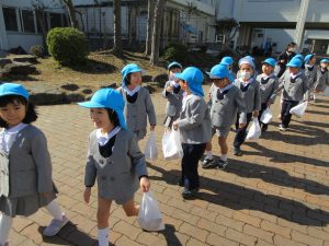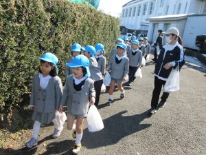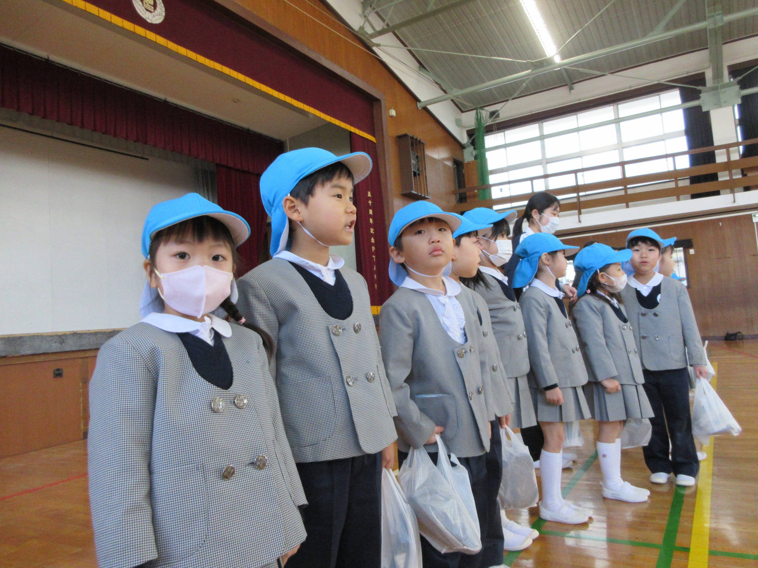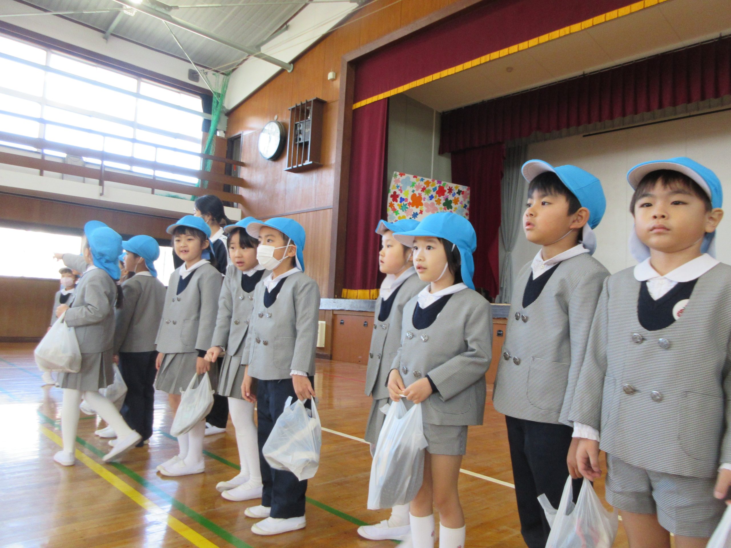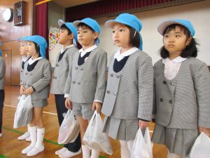 クリスマス会では、各学年どんなクリスマスグッズを製作したのか聞きました。その後クリスマスツリーをよく見ると封筒が置いてあり、中の手紙にはさくら組のお友達のクッションに手紙を入れたと書かれていました。クッションに手紙が入っていることに「いつ入れたんだろう?」と驚きの子ども達でした。手紙には、CDデッキに入れたテープを聞くようにと書いてあり、テープを再生するとサンタさんからのメッセージが入っていました。呪文「さんさんさんた くるくる ぽん」と唱えるようにとの事で、みんなで唱えてみるとクリスマスツリーが点灯し、とっても綺麗になりました。