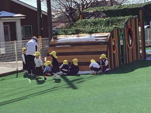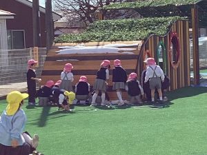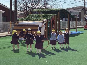そしてどこからか鈴の音が聞こえ、サンタさんの登場です。「サンタさんだ!」と子ども達は大喜び。サンタさんにプレゼントを貰ったり。歌のプレゼントを送ったり、最後にはサンタさんと一緒に記念写真を撮り、楽しい時間はあっという間にでした。