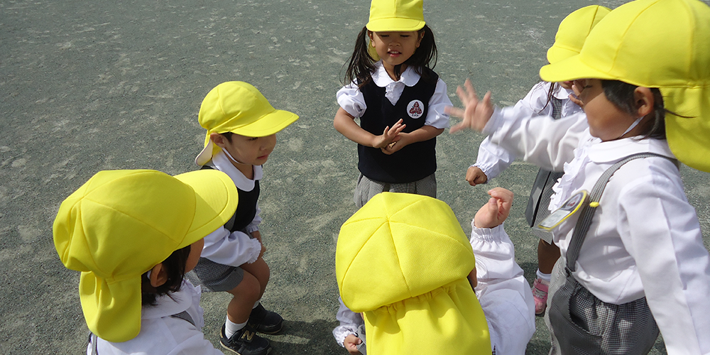 幼稚園は子どもたちにとって初めての集団生活の場ですが、集団生活において子どもたちにみんなで何かをやり遂げることや経験する機会をたくさん与えることは、子どもたちの関心を豊かにしていきます。楽しいこと、嬉しいこと、時には嫌なことや悔しいことも経験するでしょう。それら一つ一つが子どもの身になり、生涯にわたる学びの基礎を培うと考えています。子どもたちがその後の人生において、どのように社会参加をしていくかにもつながります。