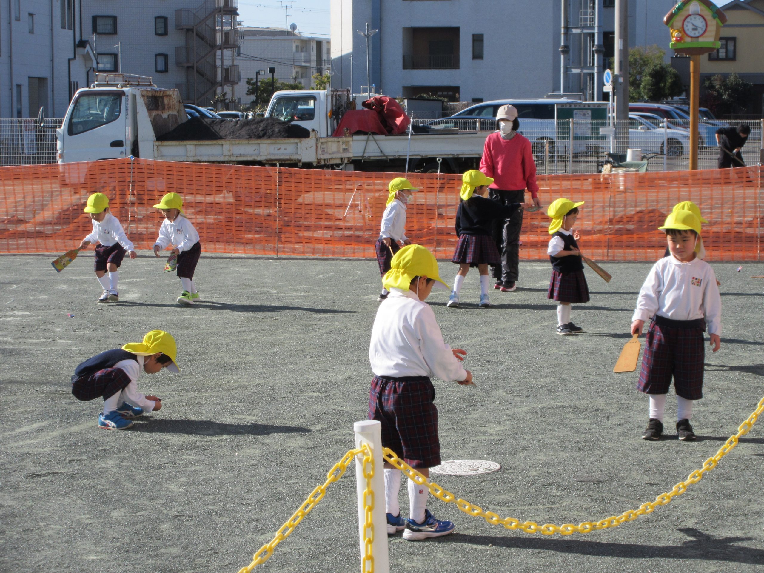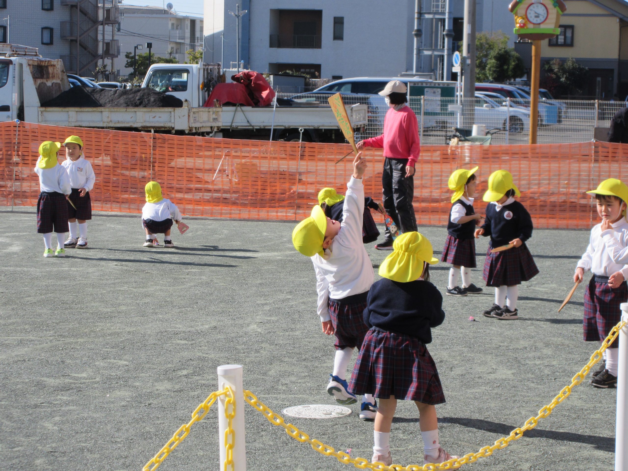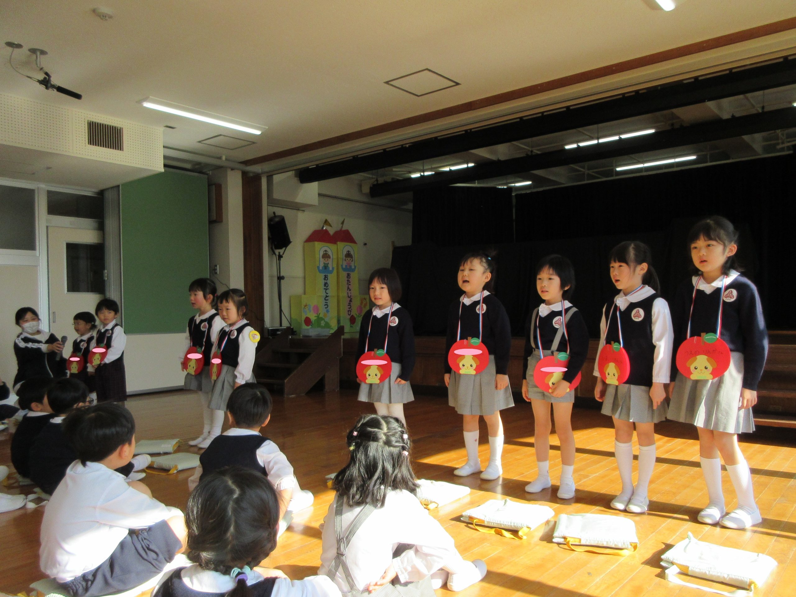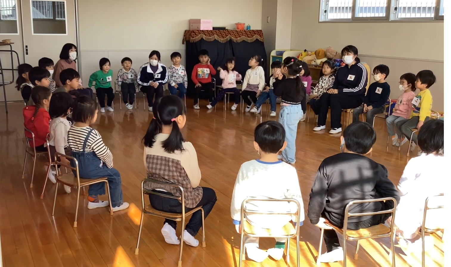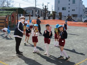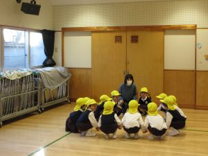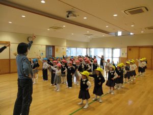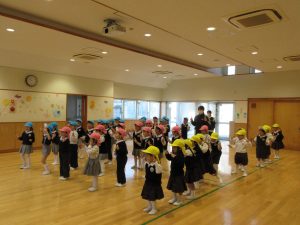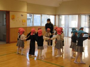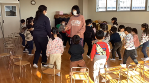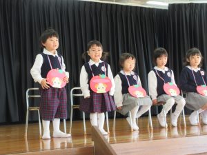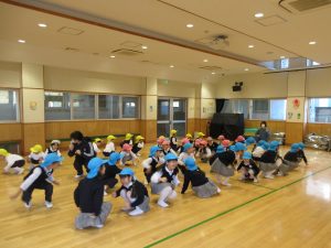 昨日から子ども達は豆まきを楽しみにしていました。。豆まきは、各クラス鬼チーム・豆まきチームに分かれて全園児で行いました。「ガォー」と立ち向かってくる鬼に、「鬼は外」と元気いっぱいに豆を巻いていましたね。とても楽しかったようです。お家に戻った子ども達に話を聞いてみてください。