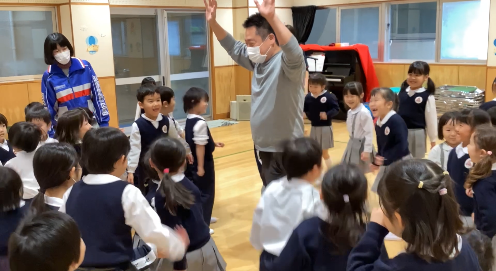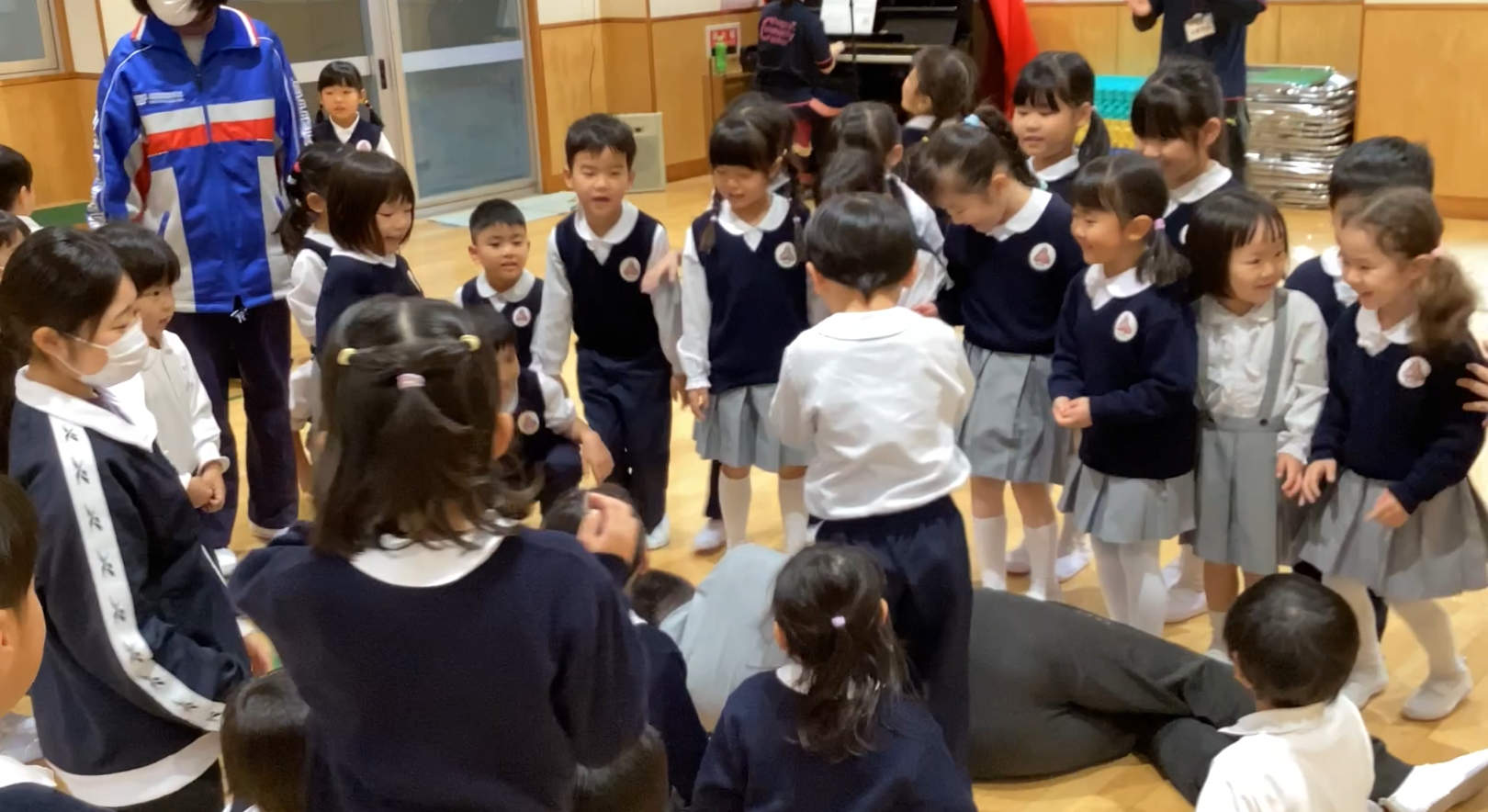 11月25日(火) 園長先生のお友達という設定で長後市民センターの方が来園し、手遊びやジャンケン遊び、ピアノの音に合わせながらのリトミック遊びを楽しみました。一緒に参加していた園長先生の姿に子ども達も大喜びでした。 楽しい時間をありがとうございました!