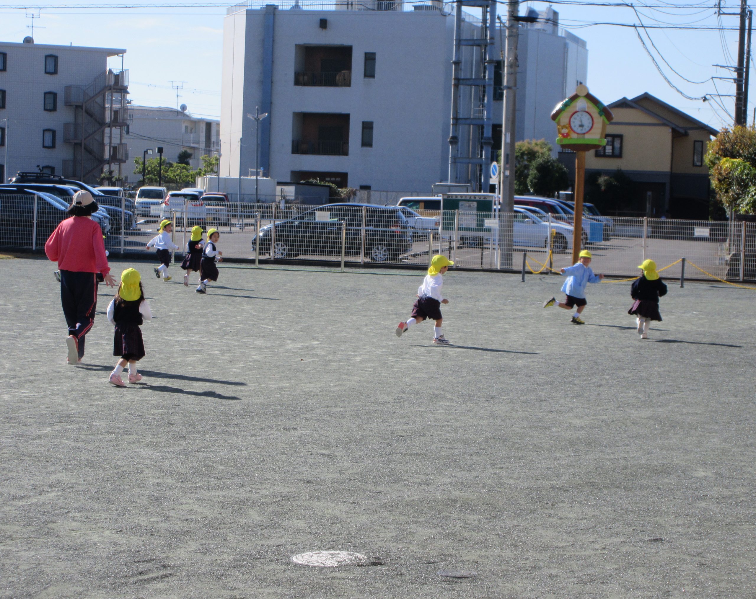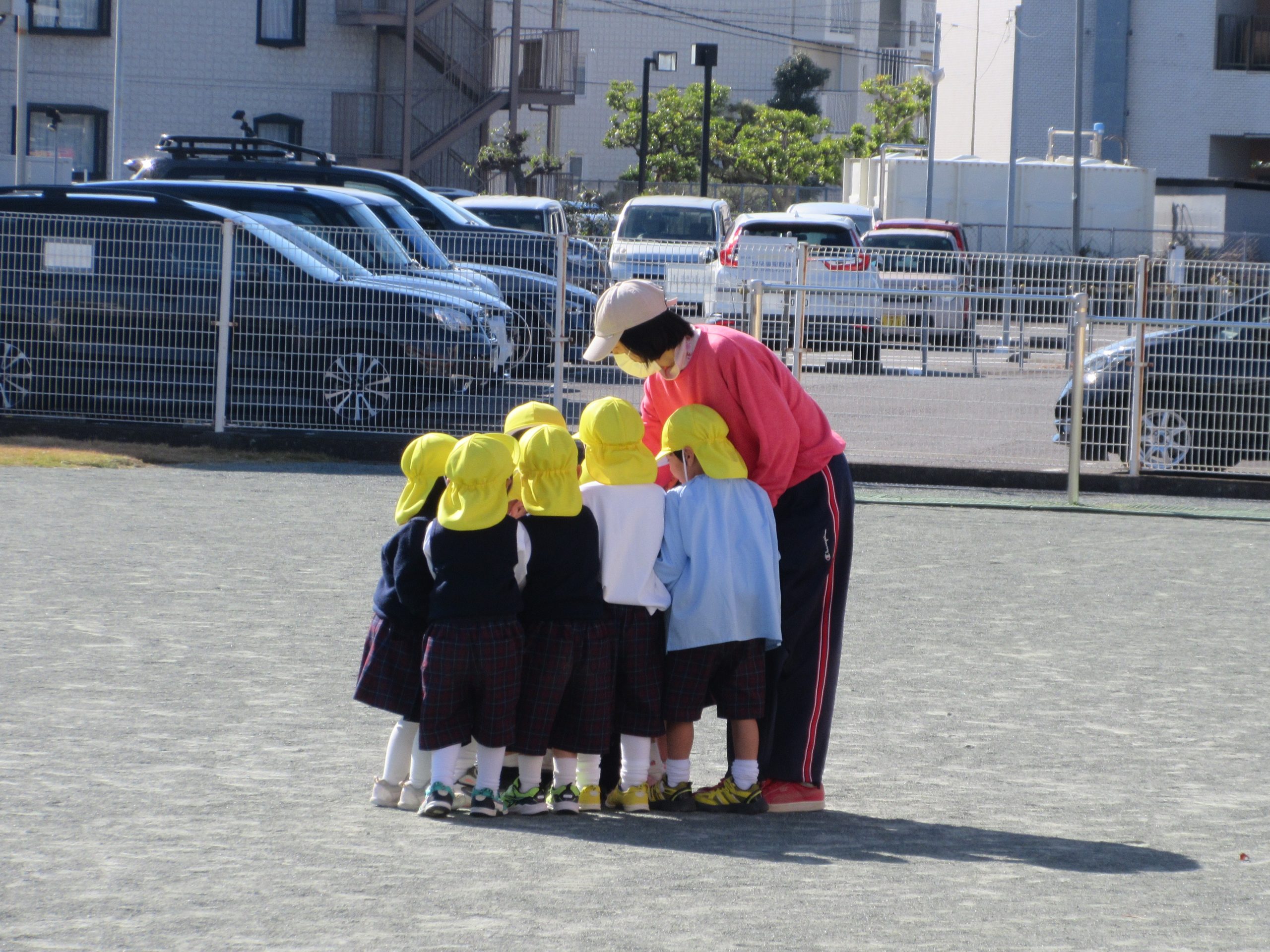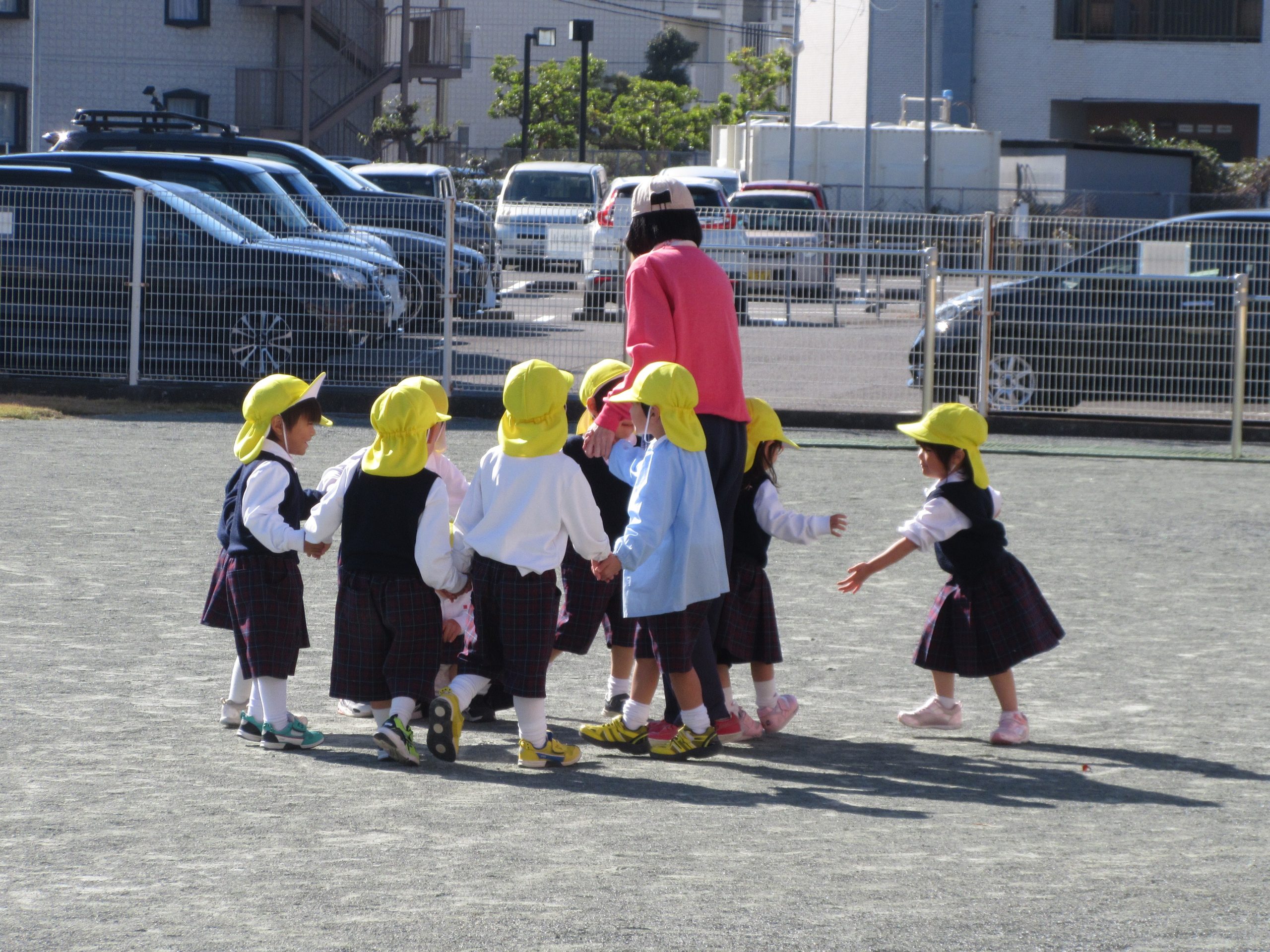 11月21日(金) 園庭で遊んでいたら、綺麗な花びらを見つけた子がいました。それをよーく見ると、何とハートの形をしていました。みんなが「見たい!見たい!」と群がって「綺麗だね」「本当にハートだ」と言い合っていましたので、是非ハートの花びら写真で見てください。 たんぽぽ組は、思い思い遊んでから「あぶくたった」の遊びをみんなで行い、楽しそうに追いかけていました。