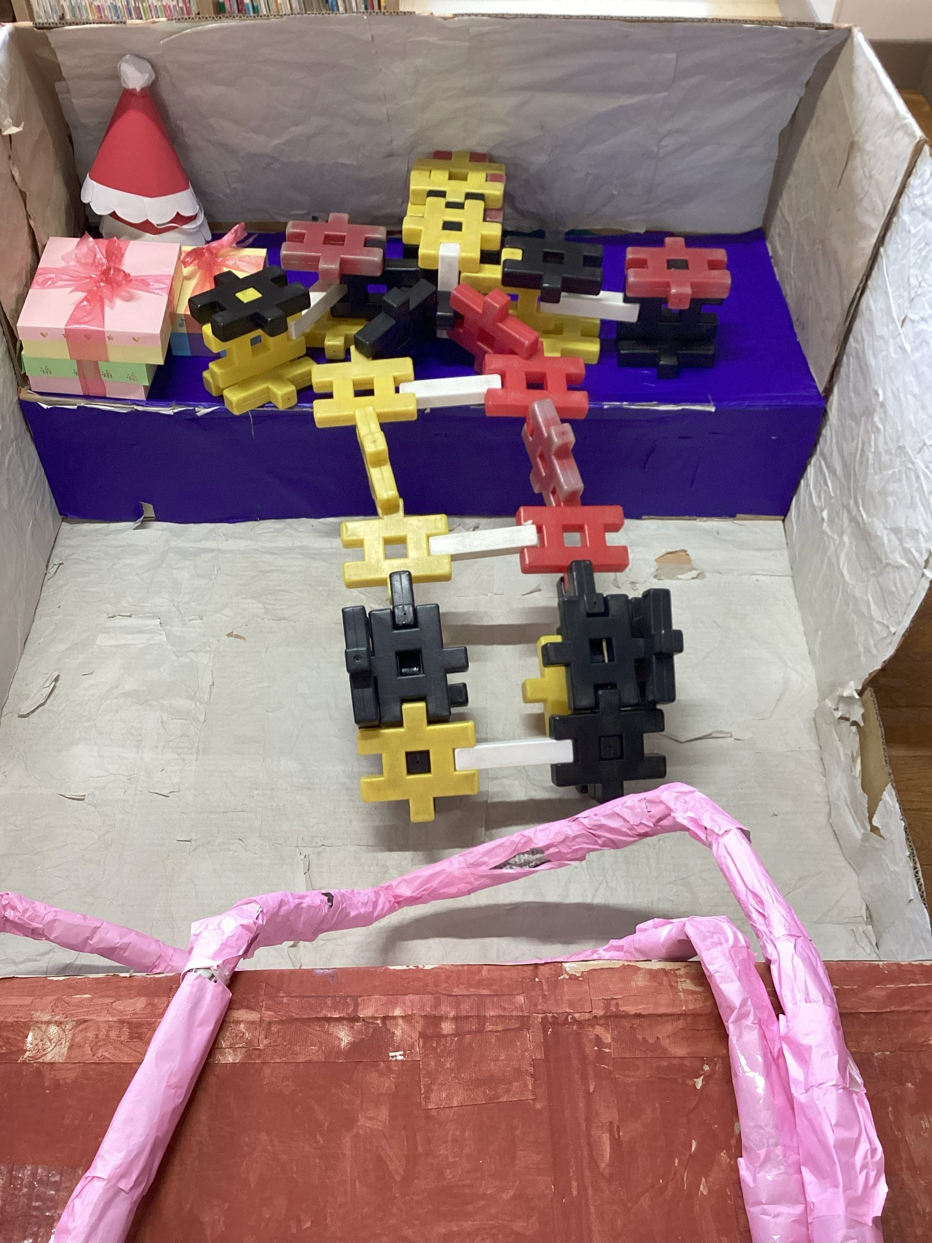11月27日(木) さくら組のある子がロボットを作りました。一生懸命に「ここはこうした方がいいかな?」と考えながら作った大作です。ご覧ください。 ブロックの部屋にも沢山の作品があります。たんぽぽ組の頃から慣れ親しんで、年々子ども達は思ったように作品が作れるようになっています。たけのこクラスでは、ゆり組・さくら組の子ども達がたんぽぽ組の子に「こうしてごらん」と声をかけて一緒に作る微笑ましい姿が見られます。